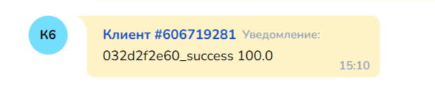 После успешной оплаты в диалог клиента поступит уведомление, при помощи которого вы сможете настроить дальнейшую логику схемы. &#x20;